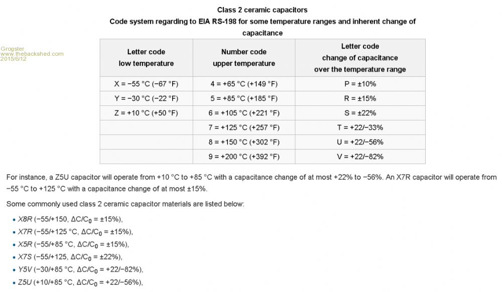 Don't get me wrong - nothing bad about akashh's suggest of X7R. It would work fine, but as it is rated for a higher temperature, which you won't be exposing the cap to when used with the MM, then paying the extra for X7R is, IMHO, a waste of cash. Note how if you were using something like Y5V, then the cap can vary in capacitence up to 82%!!! That is a hell of a lot!!! Yes, it is proportional to the ambient temperature the cap is exposed to, but that still represents a huge amount of change. Smoke makes things work. When the smoke gets out, it stops! |