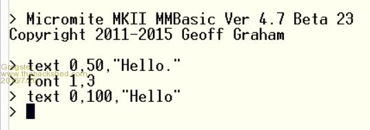 - The large number only font has been renamed font #1 and the other fonts have been moved up. See page 17 of the "Micromite Advanced Features" manual for the new font numbers. This was done so that the same fonts will be on the same font numbers on both the standard MM and the MM+.