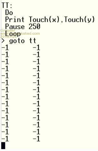 To clarify: if you run this simple loop in the image, -1's start appearing. I would expect that, as the panel is not being touched. As soon as you touch the panel - anywhere - the -1's STOP coming, but there are no other numbers to represent the co-ordinates of the touch no matter what. Touching the panel has the effect of pausing the loop output for the duration of the touch.Edited by Grogster 2015-07-21