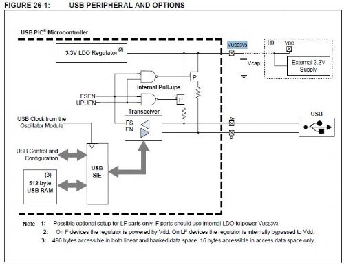 This caught me out at first as it is different to the PIC32MX250 Vbus connection.