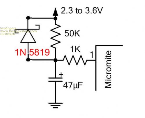I noticed that on more than one occasion, when I connect the power using this fumble method, the uMite will power up and the Geoff welcome string will pop up on the screen, but the program is not auto starting. So I do a "list" and there is nothing there. My program is gone. So I simply reload the program and all is fine. But this does happen, just not consistently. My pin 1 is tied high using a 10k resistor.