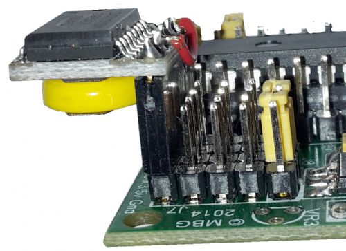All that is needed to plug into my `Mik-Standard' I2C bus is to run a short wire (red in the following pictures) from Pin 1 to Pin 4 of the 5 pin female header and offset the module when you plug it into the I2C 4pin header so that pin 1 is hanging over as shown below.
