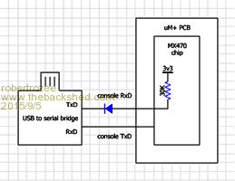 I tried a few different values of resistor in the CONSOLE Rx line (Pin 6 on the uM+ 64pin)