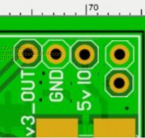 The pins could be labeled 5V USB, Gnd, 5V in, 3.3V out
