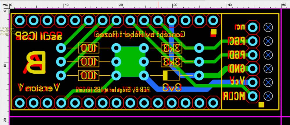 With Robert's permission, I post images here of PCB's I will be getting made for his programmer unit. I plan to offer kits for this at very low cost, in the best interests of getting people involved with the MM family of chips.