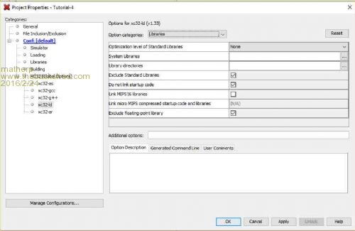 Next we need to set the linker options as follows: