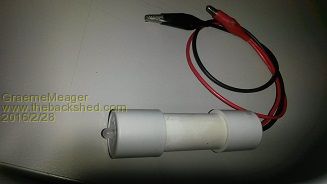 As I have about 10 vehicles with a lead acid 12 volt battery and some of them are used infrequently, I wanted a simple way of monitoring the battery at a glance to be warned when they needed a charge. I thought of analogue meters and LCD/LED readouts but they are limited with costs, battery drain and the need for close up inspection. Given the Micromite can be set in a very low power mode I investigated a simple method of reading the battery voltage and flashing an LED for a short duration to indicate the voltage. I settled with a red/green/amber high efficiency LED that can be pulsed for 2mS and give a good amount of light to be noticed over a few meters distance. I chose to flash green if the terminal voltage was above 12.5 volts and red below 12 volts with the area between a graduated orange (from more green to more red). The circuit will draw less than 100uA per if averaged over time (even though the LED is operated at over 20mA it is only for a very minimal time). The current draw is minimised by using a low quiescent current 3 terminal regulator. Only a handful of components are needed to complete the circuit and I managed to simply encapsulate the unit in a short piece of 18mm conduit to protect and insulate the unit. I found a 2 milliseconds flash from the LEDs that I used was adequate but the length of the flash may be altered dependant on the power of the LED.