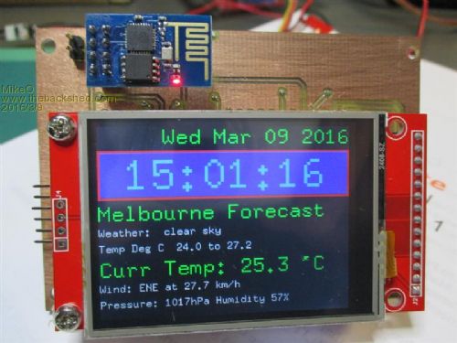 Hi WW, the display used was the 2.4 Here is the Micromite and ESP8266 code. If anyone is into PCBs by CNC I can post the NC files. 'http://www.codenquilts.com.au