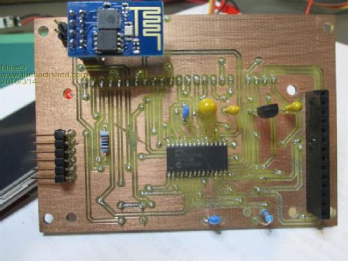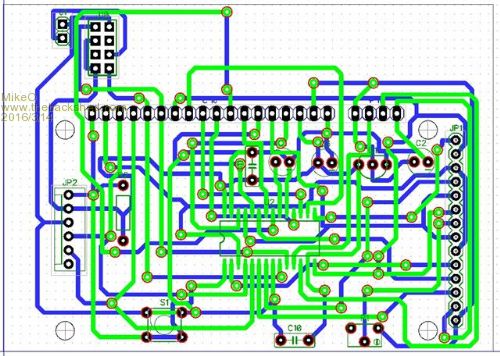 I use a a piece of HDF board on the mill, I used to mill an absolute flat and horizontal surface into the HDF to sit the PCB on but as my milling software has a Warping feature I now don't bother with the surface prep, the warp feature compensates for any irregularities due to clamping, in the copper board or the HDF. I Load the NC file, warp an area the size of the PCB, apply the warp Z adjustments. I set the Mill zero XY to the Origin/reference hole with the camera on the head and mill the top layer traces, drills and the alignment drills. The alignment drills go some 4-5 mm into the HDF board. I then turn the board over in the x direction, locate pins in the alignment holes into the HDF and clamp down the PCB. I load the NC file for the bottom traces (flipped in x), Locate the ref hole with the camera again and set the milling zero XY, warp the area of interest, apply the warp z adjustments. I then cut the bottom traces and follow with the drills. Lastly I do any cutouts and board outline, I usually have placed hold down tabs on the outline. And the finished PCB (sorry didn't have a photo prior to construction) Mike Codenquilts |