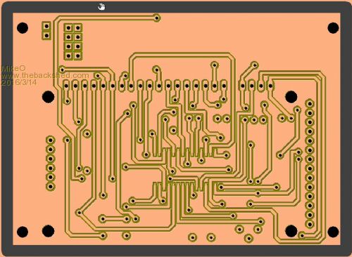 Great idea for the new thread and nice looking clamp Jim. My current interest has been the PCBs as per previous posts, I was pretty happy with the last one I did and am confident to tackle a couple of other projects soon. I am using Diptrace , tried Autotrax but unlike Mick I wasn't that taken with it, but busy in the interface BUT its probably more I had just not spend enough time with it. For CNC I then follow export the gerbers into CopperCam which does a good job of making the NC files. As mentioned I have a Carving 6040 and use a program/hardware called CNCUSB from Planet software. Mike Codenquilts |