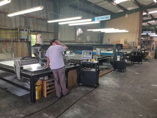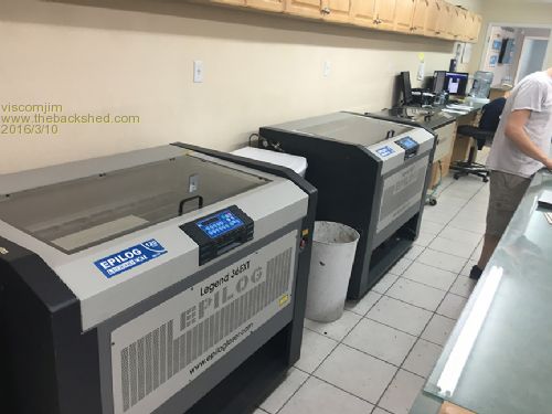 Hey Hank, I am in the sign business, so I have a few machines in the shop. The CNC routers I built myself, there are 5 of them and they are 5 foot x 10 foot beds. Also in the shop are 4 lasers and 2 16" x 24" engravers, large format digital printers, etc... Everything to make signs. My website is HERE to get an idea of what I make. I am lucky that I can use this equipment for my electronics hobby also. Fun, Fun, Fun... I am building another 5 foot x 10 foot router right now. Here are some pics...