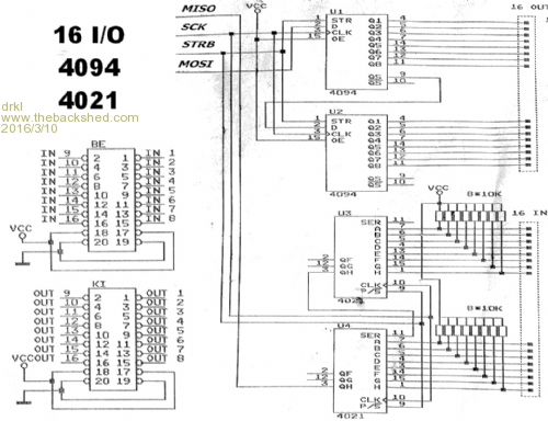 '16 OUT: 2*HCF4094 16 IN: 2*MC14021 - BOTH ARE SHIFT-REGISTERS