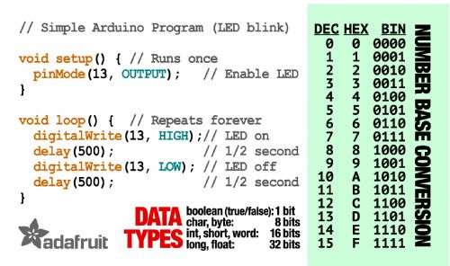 Hi All, Adafruit have released three Quick reference cards and made them available to the public to print for themselves. Unfortunately they are in Adobe Illustrator format (which I don't have) but if someone is able to convert them to a high quality JPG they could be useful to someone. The link to the originals is HERE Here is a sample Preview of what they supposedly offer.