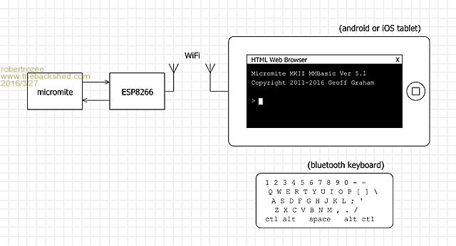have just been looking around on the web to see if anyone has produced an ESP8266 firmware to use the device as a VT100 terminal. what i have in mind is for the ESP8266 to be attached to a micromite via the serial port, and through the wifi interface present a web page that contains a VT100 terminal window. one could then use a tablet or PC running firefox or similar, with NO other software needed, and by connecting to the ESP8266 use the micromite's internal editor to write mmbasic code. i'm thinking of this as a way of creating a super-simple wireless setup using an old android tablet + bluetooth keyboard as a terminal, no other software required. as an added bonus, the micromite is electrically isolated from everything. has anyone found something like this out there. i've had a bit of a dig around, but not found anything this simple - then again, i may not have looked hard enough! note: this is NOT just passing serial data straight through. the ESP8266 is also providing a VT100 emulation layer, and encapsulating that layer within a single webpage that it serves up. to keep things simple, the ESP8266 would present itself as an isolated wifi hotspot without any internet connectivity. cheers, rob :-) |