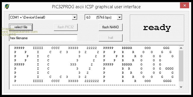 [Code]G:\MicroMite Stuff\PicProg32>pic32prog -d ascii:com18 -b3