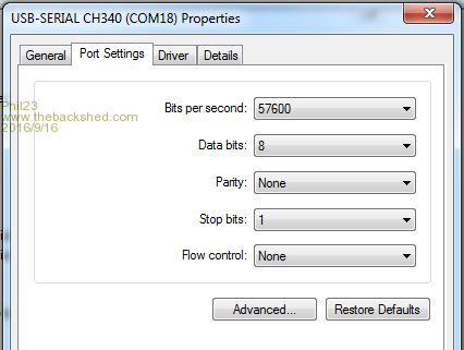 In order to upload the firmware to the Nano board, you usually have to set 57k6 or thereabouts baud rate, or it won't talk to it.[/quote]