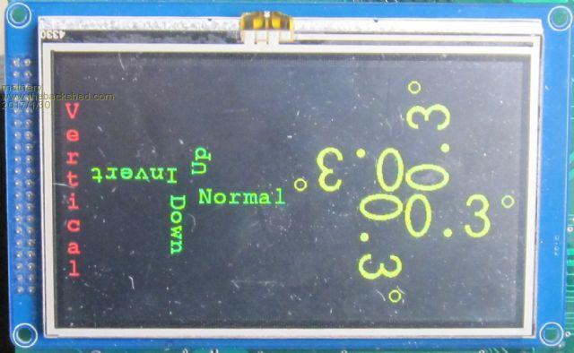 This release of the firmware has a number of significant new capabilities. 2017-01-30_144811_Micromite_eXtreme_Manual.pdf 2017-01-30_140238_MMX5.3b10v9.zip Text output in all orientations It supports text output in all four orientations + vertical directly from Basic on all supported displays including VGA. This is achieved by simply including the orientation in the justification string so: text 100,100,”ABC”,ICM will output ABC inverted with the string centered on 100,100 horizontally and vertically. Valid codes are N(ormal), I(nvert), U(p), D(own) and V(ertical) Automatic GPS data input and NMEA decoding It supports automatic decoding of NMEA input from a GPS. This is simply activated using OPEN "COMz:baudrate" as GPS [,timezoneoffset] The timezone_offset parameter is used to convert UTC as received from the GPS to the local timezone. If omitted the timezone will default to UTC. The timezone_offset can be a any number between -12 and 14 allowing the time to be set correctly even for the Chatham Islands in New Zealand (UTC +12:45) Once the GPS is "opened" the function GPS will give immediate access to individual parameters GPS(ALTITUDE) returns current altitude if sentence GGA enabled GPS(DATE) returns the normal date string corrected for local time e.g. “12-01-2017” GPS(DOP) returns DOP (dilution of precision) value if sentence GGA enabled GPS(FIX) returns 0=no fix, 1=fix, etc. if sentence GGA enabled GPS(LATITUDE) returns the latitude in degrees as a floating point number, values are –ve for South of equator GPS LONGITUDE) returns the longitude in degrees as a floating point number, values are –ve for West of the meridian GPS(SATELLITES) returns number of satellites in view if sentence GGA enabled SPS(SPEED) returns the ground speed in knots as a floating point number GPS(TIME) returns the normal time string corrected for local time e.g. “12:09:33” GPS(TRACK) returns the track over the ground (degrees true) as a floating point number GPS(VALID) returns: 0=invalid data, 1=valid data. ALWAYS CHECK THIS VALUE TO ENSURE DATA IS VALID BEFORE USING OTHER GPS() FUNCTION CALLS Sensor fusion for applications needing orientation information It supports automatic calculation of pitch, roll and yaw from 9-axis sensors allowing applications like a tilt-compensated compass to be programmed entirely in Basic - code attached below watch the video Measurement of unknown input baudrates It supports a new function BAUDRATE which will report the baudrate of an active serial input on any of the comms ports Paged display for 4.3" SSD1963 It supports the 4.3" SSD1963 display using a new driver SSD1963_4P This sets the 4.3” SSD1963 display up in 480 x 864 (landscape or reverse landscape) or 864x480 (portrait or reverse portrait) pixel mode. The screen viewport is 480x272 or 272x480 and the position of the viewport is controlled by GUI STARTLINE n. This mode of operation allows display updates to be done on a non-visible part of the graphics memory and then the viewport moved to see the updated image completely eliminating tearing effects. The 4P display controller is fully compatible with TOUCH, MOUSE, CURSOR and GUI controls. and is used in the compass program Arrays as inputs to drawing routines It supports arrays as inputs to the basic drawing routines. This can provide huge speed improvements in some cases. For example outputting individual pixels in a loop can achieve 22000 pixels per second. Using arrays to contain the pixel coordinates speeds of over 400,000 pixels per second are possible. More details of the new functionality are included in the Micromite eXtreme manual attached above. Errata Any bugs in Geoff's 5.3b10 beta release for the MM+ will probably also be in this code. Other bugs are entirely my own creation. Code and background image for the compass 2017-01-30_142749_compass.zip |