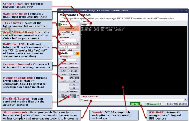 Is a simple console that allows you to connect to any COMx port that is connected to a board with Micromite board.