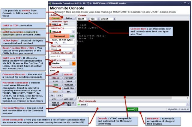 - Console is optimized for micromite tech