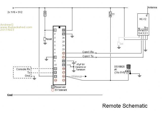 I'll make the speed changes and I like the idea of a third AA battery as the HC-12 can go to 5V. I could put it either side of the 4K7 resistor and see whether it or the other two die first (although the two could keep the one up so it is not too precise).