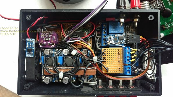 Howdy all, As alluded to on another thread, I have been spending waaaaaaay too much time reinventing the wheel and building a Remote power supply controller/monitor to power my Xmas Inflatables. Anyone who has these fan driven monstrosities knows that eventually the fan gets a gut full of water from the summer storms we experience down here in Sunny Melbourne. When this happens, the fans don't short-circuit, they just tend to run slowly, drawing a fair amount of current, which eventually turns the fan into a molten lump of plastic. I find if rescued in time, the fans can be resurrected by drying them out. So the purpose of this module is two-fold. 1) To provide the necessary 12VDC to operate the fans, 2) To monitor the current draw and trip the relay if an overcurrent situation is detected. So in true GTG! fashion, I've gone overkill. ![]() ![]() ![]() Features -4 separate 34VDC-12VDC supply 'Channels' -I2c relay control -temp monitoring -variable fan speed control using PWM depending on temperature -fan supply uses all 12v channels via diode separation -wireless comms using HC12 -I2c 16x2 LCD display for local monitoring -LCD Display backlight timeout -4 local switches for relay on/off/reset/LCD backlight control -Can run independant of GUI monitoring unit Also, the GUI monitoring unit features -Wireless comms using HC12 -Overcurrent trip points adjustable -'Auto' trip point adjusting routine -SD card logging of all data - time stamped (RTC) -various displays showing power supply/relay status (OK, TRIP, FAIL) -GUI LED indication of status (Green ON/OFF, RED for stuck relay ON) -Voltage/Current/Max Current/ Startup Max Current displays -Full control of 'slave' power supply unit(s) Inside the box:- ![]() ![]() It's a mess. It's amazing how you think you lay something out nicely, but once you throw the point to point wiring in it rapidly becomes a nightmare! Most modules are ebay sourced. -relay unit. -2x LCD I2c modules. (One converted to drive the relays) -4x INA219 modules (stacked on top of each other) to monitor voltage/current -DS18B20 temp module (on top of fan) -HC12 module with a straight wire for antenna (might go back to the spring one) -Fan driven by TIP120, controlled by the MM -You-beaut Explore28 module hidden in there somewhere as well -5x Buck power supplies. (2x2 stacked on top of each other providing 12V, one by itself supplying 5V for MM) -16x2 LCD module -Stick on Membrane switches As far as the GUI side of things goes, well, it's just a MM+ LCD backpack, coupled with an RTC module and a HC12 module. I have to build two of the slaves units because I have 7-8 inflatables to power on both sides of the garden. I power the whole lot (including stupid amounts of LED lights) by a DELL laptop power supply (19.5VDC), driving a Boost converter set at 34VDC. This is then distributed around the garden as required. It eliminates the 240VAC power leads and crap I used to have spread everywhere...... Cheers! GTG! ...... Don't worry mate, it'll be GoodToGo! |
