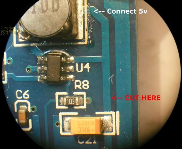 I cut the other side of C21 to leave it in circuit. It is easy to go back to normal if required by soldering a link across the cut |