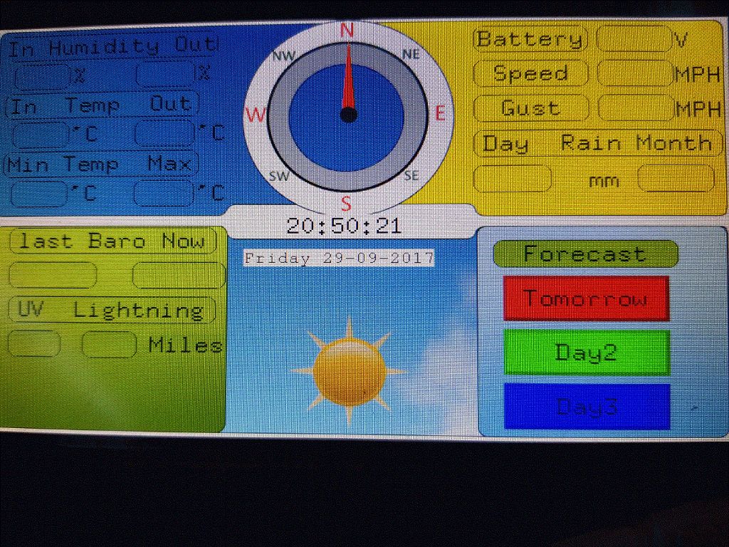 I "was" going to include lightning and UV detectors, but I've changed my mind, for the little bit of lightning we ever have here in the UK it's not worth it. so the space where at the moment it says "UV and Lightning" will be blank also It's not connected to the outdoor unit at the moment as I'm waiting for a new gps unit to arrive, my last one broke The weather icon in the bottom centre will change to whatever the relevant icon for the current weather is at the time ![]() |