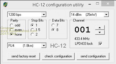 Thanks for this. Can you provide the HC12 configuration settings you use, so all will be in one place?