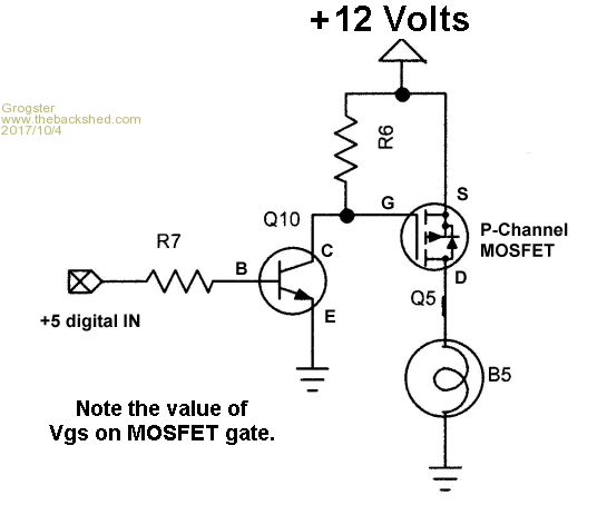 HOWEVER: you need a P-channel device for the circuit as shown, Dr.Google suggests a BS250., but you might like to hunt around for a more modern device if you are going to have to get one in specially - lower RDS, better VThresh etc.