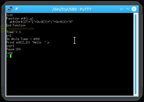 Paul, I use putty and it works pretty well for me. One nice trick for Linux is how to find out the virtual com port if you are using USB to talk to the mite - from a terminal prompt, enter the following dmesg | grep tty - this should return you something like doug@dougMint17 ~ $ dmesg | grep tty [ 0.000000] console [tty0] enabled [ 73.067131] cdc_acm 1-2:1.0: ttyACM0: USB ACM device doug@dougMint17 ~ $ in MINT, virtual COM devices are either ttyACM0, ttyACM1 etc or ttyUSB), ttyUSB1 - in my case, any mite running the 1455 USB to serial chip shows up as a ttyACM device while the CP2102 serial to USB shows up as a ttyUSB device When you first start putty, you have the option to set up the connection settings and save them as a named setting - I create settings for each of the mites I have connected including interface type (eg. serial), speed, virtual port (eg. for Peter's 144 pin MMX this is /dev/ttyACM0 on my system) and I have increased the default font to a larger size - I used 18 point which is good for my eyes I found initially that I could not save the settings - I know this is related to having the appropriate rights in the putty directory - I cheated and just invoke putty using sudo (eg. sudo putty) which then prompts me for my password - I am sure this will offend the purists as I am then running putty as root but at the moment it works. When in the putty terminal screen, you can get back to the settings window by moving the mouse anywhere in the putty main window and pressing Ctrl Right Click then selecting Settings I am also learning so will share any tips as I go along. Cheers, Doug ... almost all of the Maximites, the MicromMites, the MM Extremes, the ArmMites, the PicoMite and loving it! |