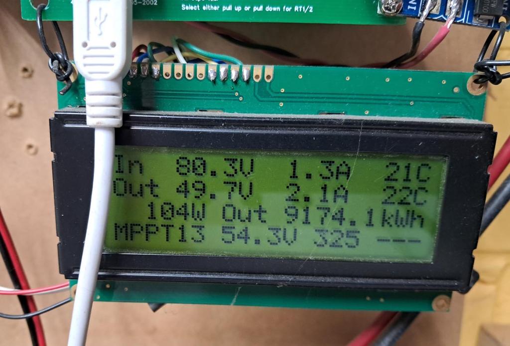 Looks very nice! What version of the MPPT board are you using? It looks a bit different from the one I referenced / built - you've got the Nano(s) on board! Cheers, R |