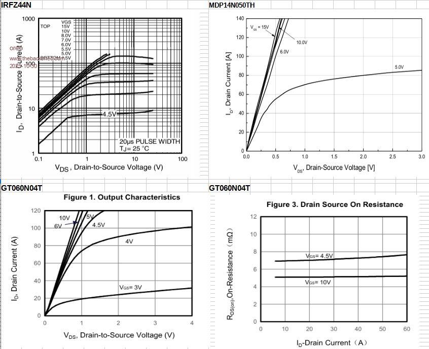 But I was puzzled by the first graph until I realised that you show IRFZ44N when I am using the Logic level gate version which is the IRLZ44N.