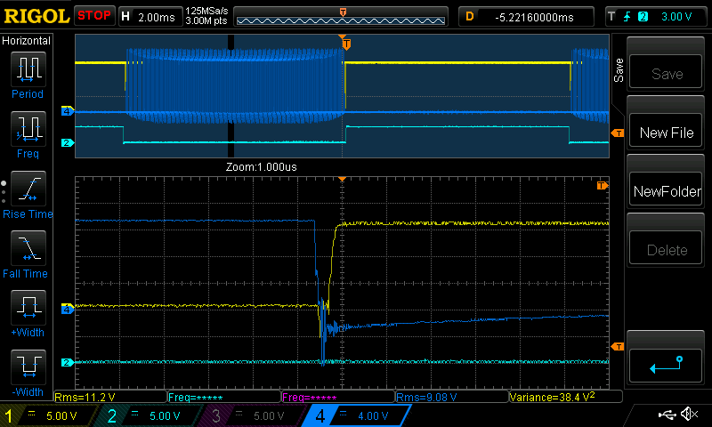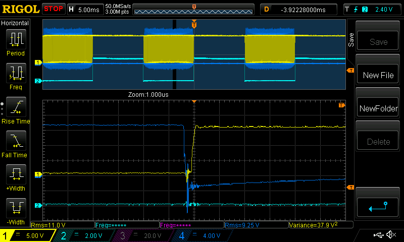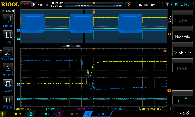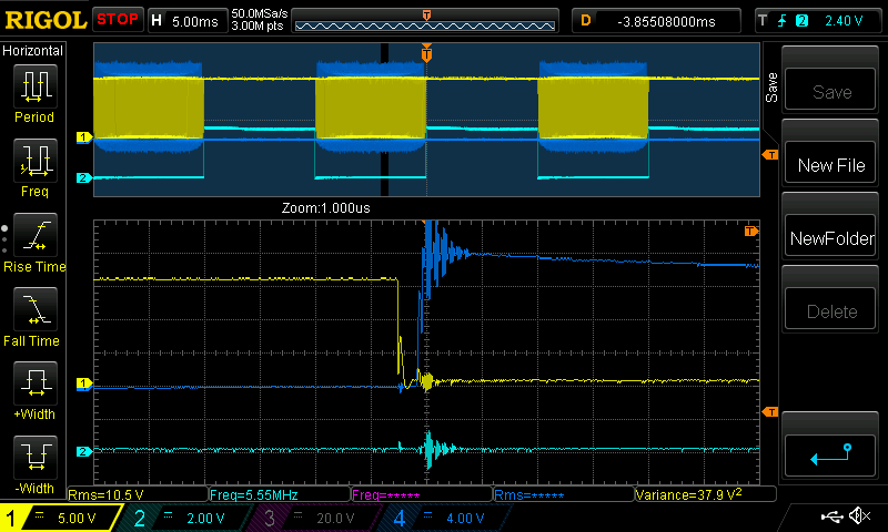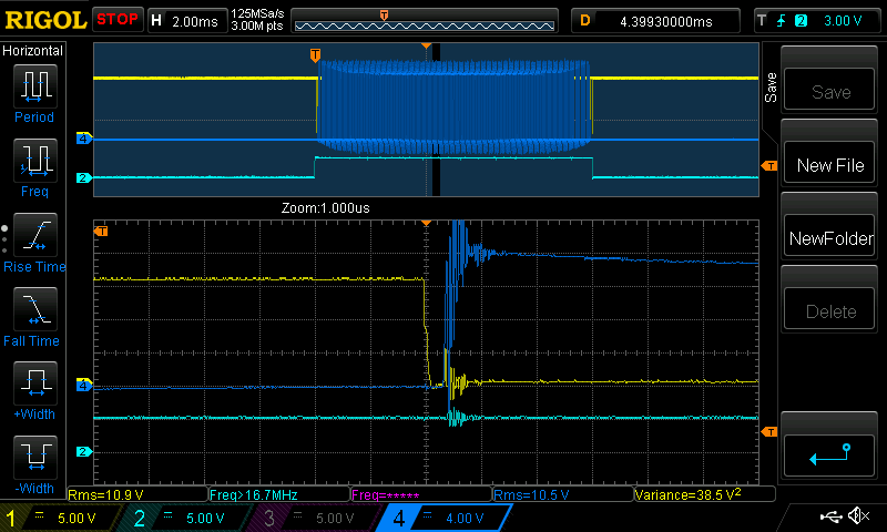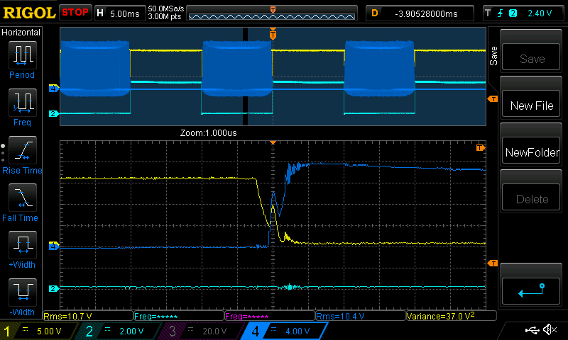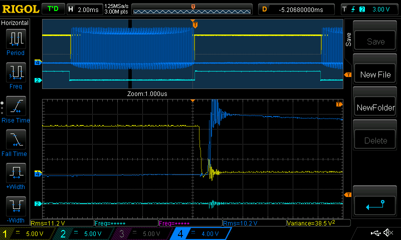 low side switches on (Yellow is low side gate voltage)