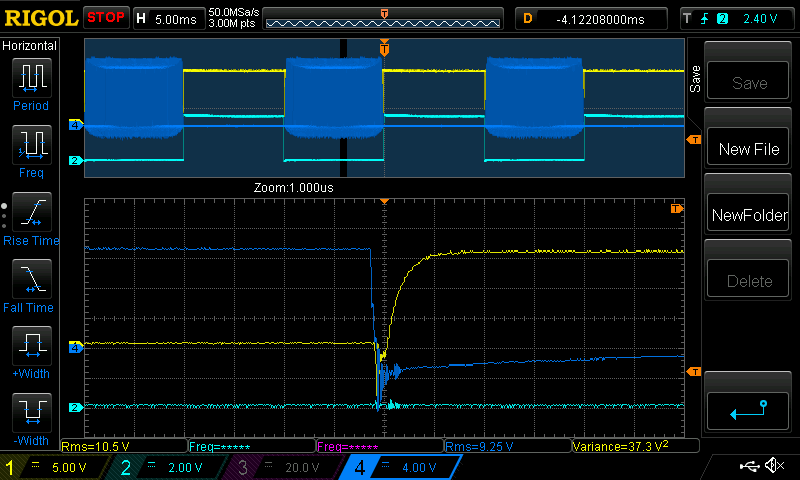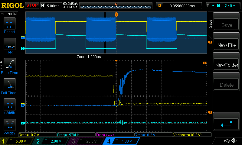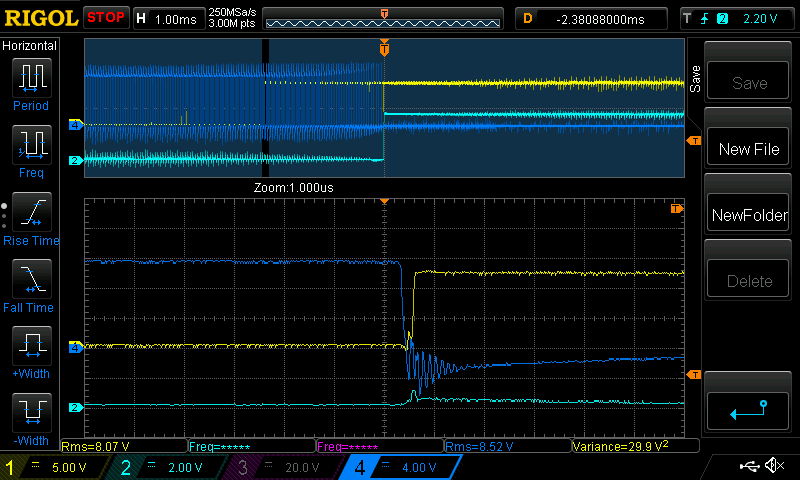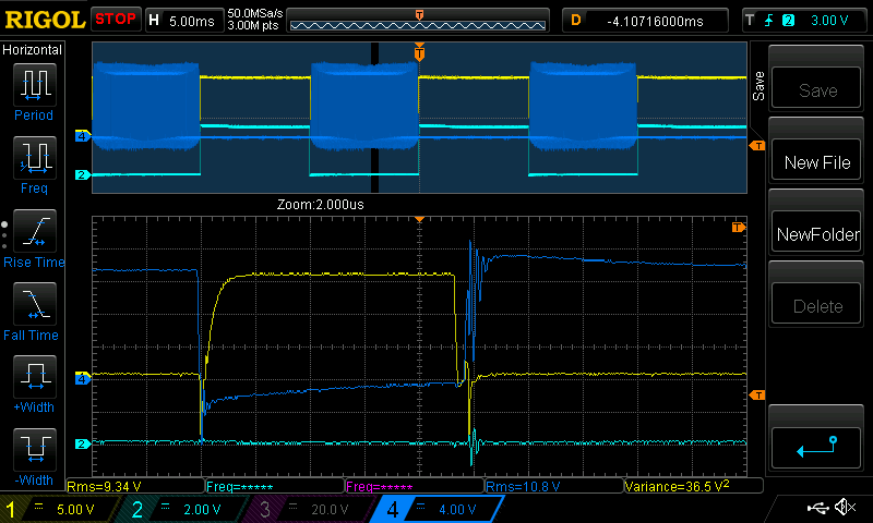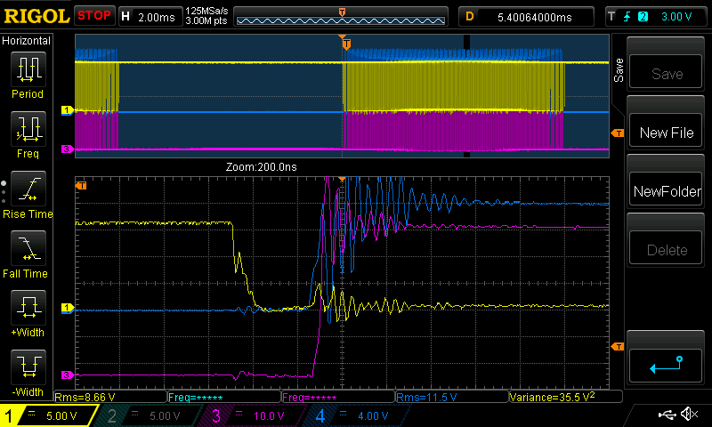 Looking at the 200W load low-side waveforms of the new board: