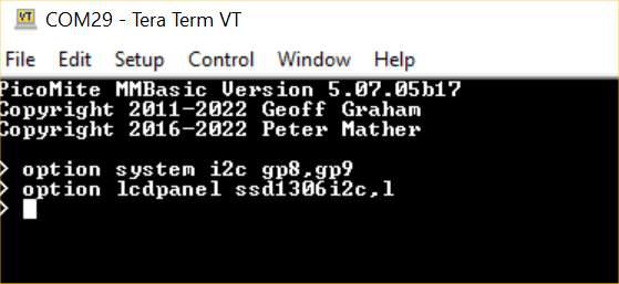 Thanks @matherp. using picomite non vga. I used ssd1306 on 8bit and 4k7 pullups.