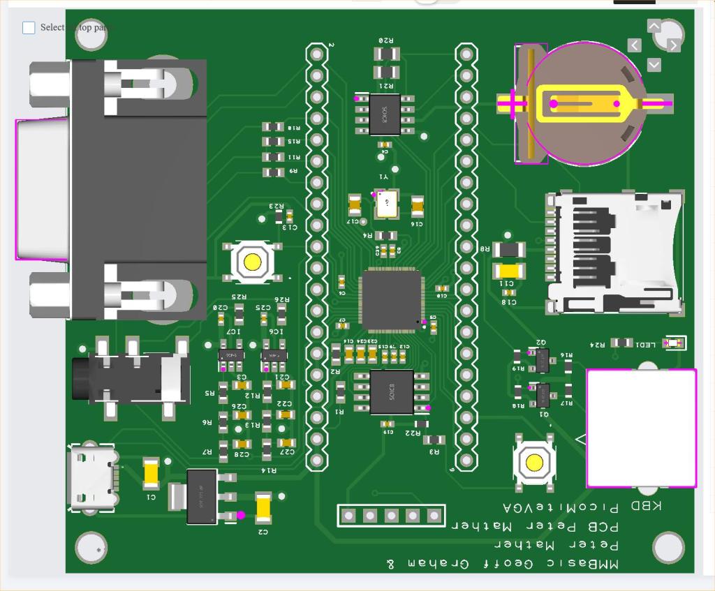 I have designed a ground up PicoMiteVGA including 16Mbyte Flash, DS1321 RTC, Volhout's high spec audio filter, micro-SD, PS2 etc.