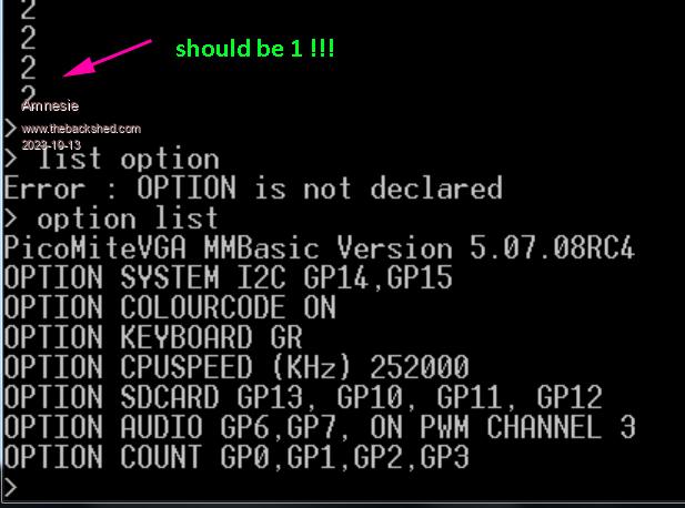 Forum Index : Microcontroller and PC projects : [PicoMite] count input on rising edge PROBLEM, no it's not me!