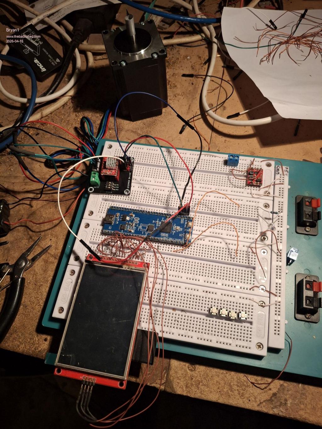 Ok still having fun so I decided to setup my scope and set channel 1 to the step pin but haven't seen any action on the scope. It does seem it's going in an endless state Stepper initialized - 100KHz timer active Warning: Soft limits not configured. Use STEPPER LIMITS to set working area. Hardware limit switches configured Stepper armed - executing buffered commands Homing axes... The code OPTION EXPLICIT On error skip Stepper close Stepper Init 0.05, 150, GP22 'setpin GP27, Dout 'setpin GP25, dout 'setpin gp26, dout 'const dir = "GP25" 'const steppin = "GP27" 'const enable = "GP26" const E_Stop = "GP22" STEPPER HWLimits GP23, GP21, GP20, GP19, GP18, GP17 'Stepper limits X, 0, 200 Stepper Axis X, GP27, GP25, GP26, 0, 800, 100, 100 Stepper Position X, 0 Stepper run 1 'Stepper Position Home do RunStepper loop Sub RunStepper Stepper gc g28 x0 f100 Stepper gc g1 x100 f100 Stepper gc g1 x0 f100 end sub I have declared X position as 0 but the software is homing the axis in an endless loop |