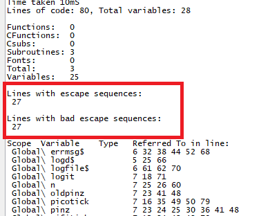 And the next MMEdit will include a list of escape sequences, both good and iffy in the variable report. ![]() Just to make conversion easier. Jim VK7JH MMedit |