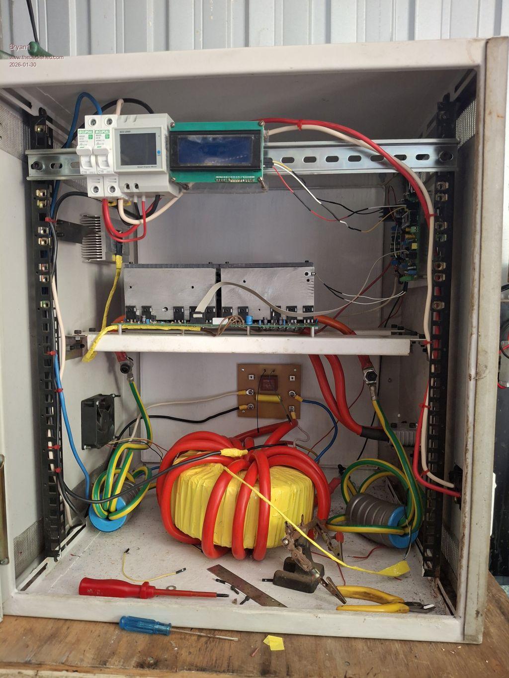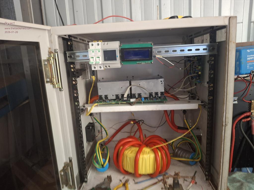 Well working on the inverter last night I did notice I had the Anderson connector upside down and I am glad I found it, anyway turning it around and clamping it back didn't take long. So got onto finishing the AC board and got mounted then got onto the AC wires and for the wire just stripped a couple of metres of 3 phase 32 amp wire I had here and with one lead from the toroid it went thru the hole of this energy meter then back to the AC board. A few little jobs left like make the wires for the VFB connection and fix the temp sensor wire on the toroid as it did pull out when I was tensioning the connections. Also got the earth to sort out. ![]() So tomorrow will be the big day to see if my hard work has paid off Now don't know why Aussie post has become snail mail as had one Ali package sitting at Adelaide airport since Last Saturday and that SSD 128gig HD coming from Brisbane from Umart is still there after 4 days. Cheers Bryan Edited 2026-01-30 15:24 by Bryan1 |