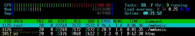 Hi Peter I did few tests with different versions of PI Mmbasic using a PI Zero w It seems any verison after 2017-05-04_191630_mmbasic maxes out the CPU See the screen shots below And 2017-05-05_082859_mmbasic This also happens on PI3 but it only maxes one core Regards Jman |