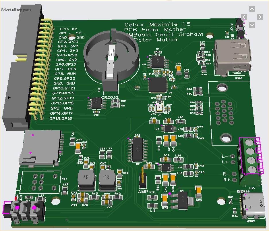@Amnesie if you can make your own PCB use Peter's circuit with a "RP2040 16M Purple" module. It has the extra pins and 16Mb flash. Same size as a standard Pico but different pin layout. Less ⏚ pins to make room for the extra GPIO pins. A little cheaper too, eg. https://www.aliexpress.com/item/1005006290969946.html |