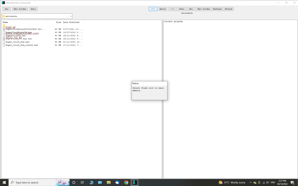 I have just started playin with V5. I connected a Picomite and all seemed OK. I then connected a Micromite, ![]() The terminal worked OK but when I switch to File Manager clicking on SDcard to switch to memory does nothing and when I click to transfer a file it behaves as though I have a Picomite connected. ![]() What am I doing wrong. I printed out the Help File and have read it. "It is better to be ignorant and ask a stupid question than to be plain Stupid and not ask at all" |
