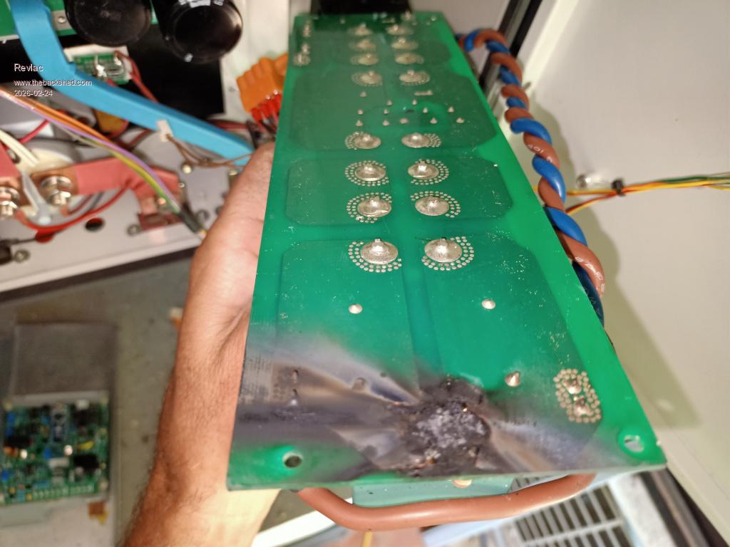 Well this morning got interesting, doing the usual stuff and then heard a POP, didn't know were from, whet looking then there was a crackle the fizzle and a few more pops, by this time I was around near the inverter and I saw the low output restart inverter on the screen, I though that sounded like mosfets popping. Quickly shut off all the power to the inverter, Realising the inverter had all ready had shut off and waiting for me to reset, cant be too serious. Opened the inverter box and smoke come out, had the camera and a short video but not great, then could see the smoke at the top right above the output filters, (stink's horrible) could see the head of a Gecko that should not be there...... F it.![]() ![]() Should I leave its paw prints there as a reminder? ![]() Burnt all the way through the PCB. ![]() Cleaned it all up, give it a conformal coating, let it dry a little put it all together again and the inverter is up and running , the loads that were on the inverter were shifted to the other inverter, took less than a minuet to do that. So I Have some more work sealing up any holes to stop the little (and other) f getting in.Seems to be running just great. ![]() Edited 2026-02-24 10:58 by Revlac Cheers Aaron Off The Grid |
