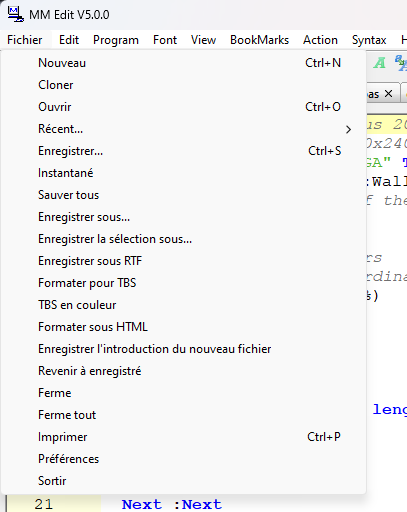 MMEdit5 has almost reached some sort of stability thanks to the feedback received. It's time to think about the next big thing - multilingual. Like most native English speakers, English is the only language I speak. I assume that speakers of 'other than English' might like the menus etc to be in their preferred language. An example of the File menu in French: ![]() This is as far as I have gone until I find out if it is worth doing. The number of languages is unlimited but it will need native speakers to do the translating to get the meaning right. This is what Google translate gives me for the file menu: [Language] Edit = Modifier Close all = Ferme tout Exit = Sortir Save as rtf = Enregistrer sous RTF Clone = Cloner Save new file intro = Enregistrer l'introduction du nouveau fichier Tbs in colour = TBS en couleur Format for tbs = Formater pour TBS Open = Ouvrir About = À propos de... Quit = Quitter New = Nouveau More = Même plus ! Recent = Récent... Save all = Sauver tous Print = Imprimer File = Fichier Save language = Enregistrer la langue Save = Enregistrer... Save selection as... = Enregistrer la sélection sous... Info = Informations Format as html = Formater sous HTML Save as... = Enregistrer sous... Preferences = Préférences Close = Ferme Snapshot = Instantané Load = Charge Revert to saved = Revenir à enregistré The way it works: I write the program in English with one small addition xlate("Snapshot") the xlate function looks up the translation for "Snapshot" and if found, uses the translation. If not found, English is used and the missing translation is remembered. Users doing the translation can export the language file and look for lines marked as missing. These lines get attended to. For a new language, one of the existing lists is used as a template. Native speakers can type their translation much quicker and more accurate than using Google translate. Changing menus and tooltips is no problem. Changing text on buttons can cause grief when the new text doesn't fit. Having multilingual menus will slow the startup slightly but will not have any effect on speed once the windows are open. MMBasic code will not be affected and you still need to keep comments and strings as 7 bit ASCII. No extended ASCII allowed. I am not intending to translate the help files. I will only continue with this if there are sufficient users of MMEdit who will make use of multilingual menus. Over to you... Jim VK7JH MMedit |