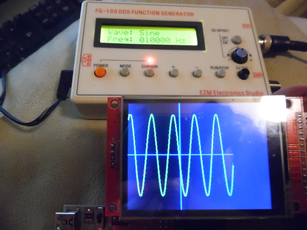 I got XR2206-based (but exceedingly crappy) "signal generator" as well. they messed the circuit for cheapness but it can sweep freq which tests a scope. I posted this over a tear ago using lcd and 2 adc in but no 90 deg sines. Mean time I changed my simple scope from line to pixel. Dunno if I like pixel,I'll sort a sine. Trigs ok. guess it's faster than line. for x%=0 to 238 'screen width 'line x%,samples!(x%+c%),x%+1,samples!(x%+1+c%),,rgb(green) 'draw new sample from sample(c%) pixel x%,samples!(x%+c%),rgb(green) 'plot new sample from sample(c%) next x% |