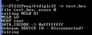 John, I played around a bit more and `installed' a winUSB driver. now the FT chip appears as a FT232R USB UART (no port No as before)... Ok I try to do a program and this is the error I now get.
