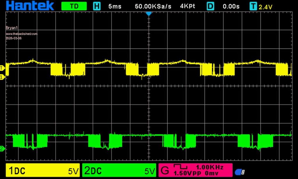 Fell asleep before i saw this. Then had to go to work. If that scope trace is vs1 and vs2, there is an asymmetry between them: the little peaks on the tops of the top trace. My guess (it is just a guess though - it's hard to understand what's going on), would be the gate drive is not getting though on one quarter - or the fets are not turning on. The outputs from the control board seemed ok in the earlier scope traces, so i'm wondrring if the +ve supply (Vtp om the schematic) for the high side drives is getting through ( i'm thinking they use bootstrapping to get the high side drive voltage, so in my mind there's more bits to go wrong there). My guess based on those scope traces is that vs1 high side is trying to turn on but vs2 high side isn't. But my guess is sort of based on the assumption the higher than expected current draw isn't caused by a short. Edited 2026-03-07 10:48 by mab1 |