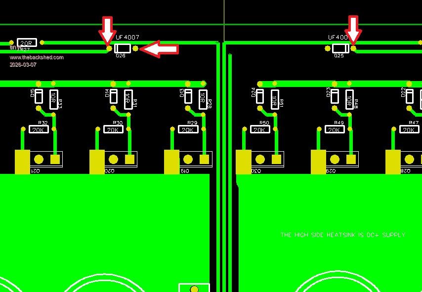 You are right about the asymmetry. Maybe Bryan can check orientation(pointing opposite to each other) and voltages at D25 and D26 on the power board. Voltage should be around 18vdc for the diode lead pointed to by the horizontal arrow. ![]() Edited 2026-03-07 12:01 by tinyt |