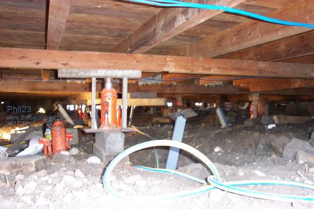 It was Winter, so did need to keep the fire going while tidying wires.. ![]() 40 Hydraulic jacks from memory, to get things back on the level. Not quite how it's done on reality TV. ![]() Edit:- Nice Bearer's & Joists they used 100 years back.... |